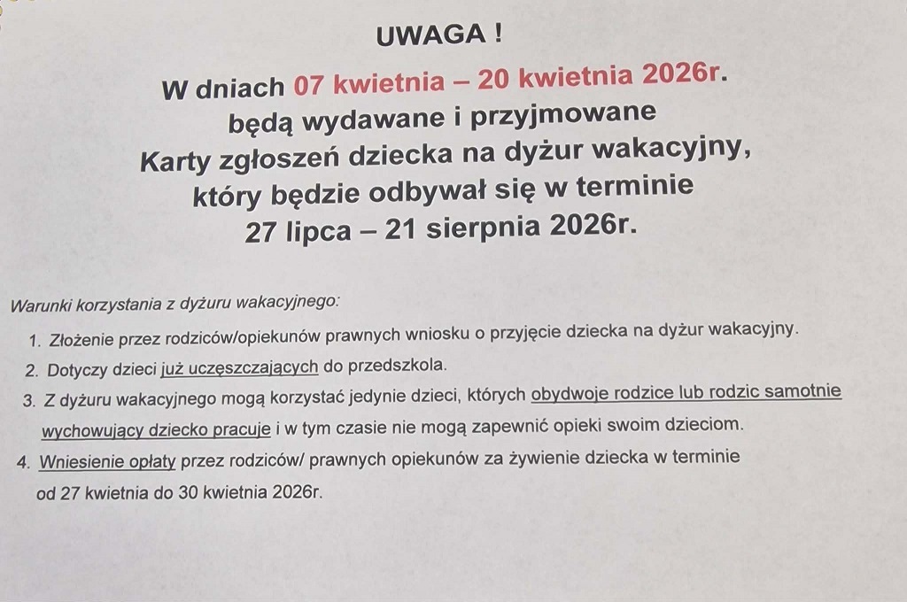 Dyżur wakacyjny – Oświata Miejska w Otwocku