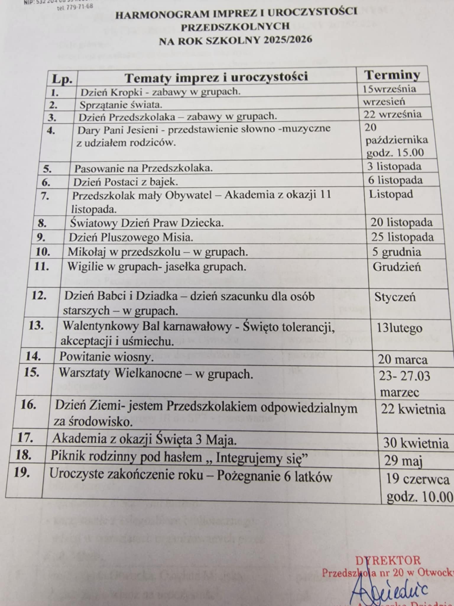 Harmonogram imprez i uroczystości przedszkolnych w roku szkolnym 2025/2026
