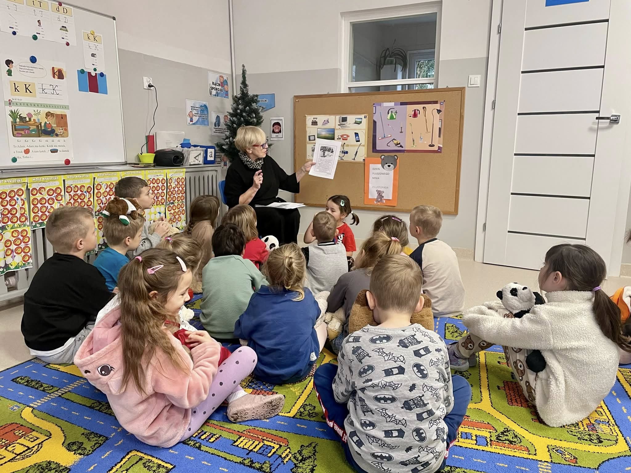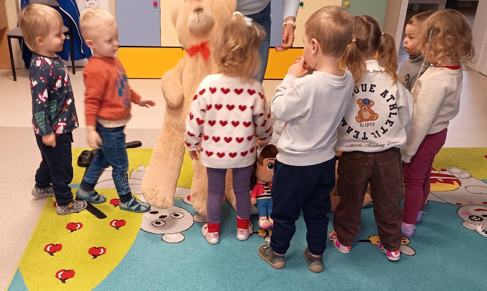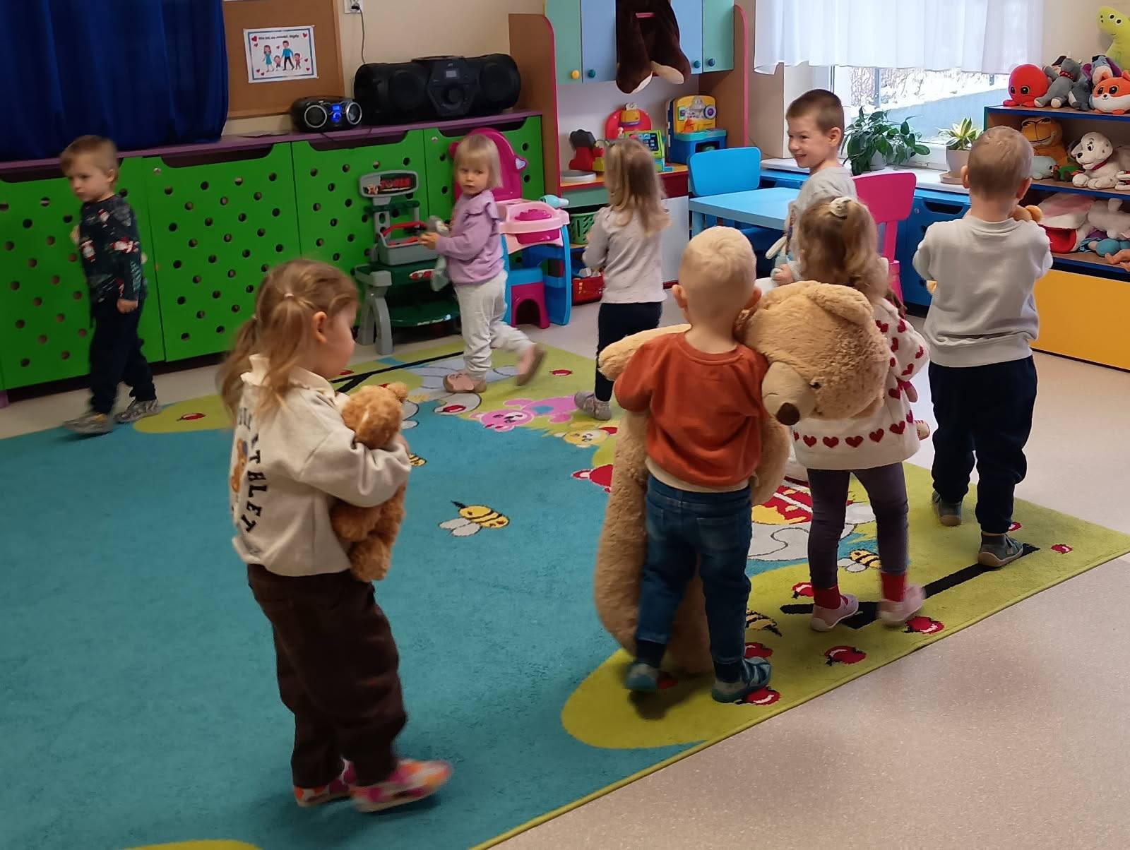 Światowy Dzień Pluszowego Misia to święto ustanowione w 2002 roku, w setną rocznicę powstania tej popularnej zabawki. W naszym przedszkolu obchodziliśmy je 25 i 26 listopada. Dzieci z grup Krasnale i Sówki odwiedziła pani Bożena z Miejskiej Biblioteki Publicznej w Mlądzu. Przedszkolaki wysłuchały historii o powstaniu misia-zabawki, wzięły udział w zabawach ruchowych i współpracując, ułożyły niedźwiadka z wyciętych elementów. Zwieńczeniem misiowych zajęć było wspólne, grupowe rysowanie misia na dużym arkuszu papieru. Dziękujemy Pani Bożenie za wspólne świętowanie