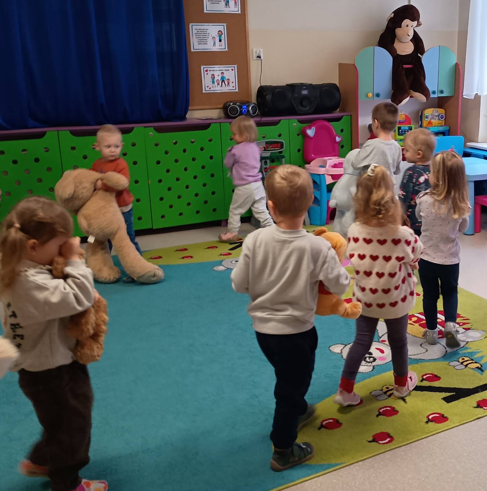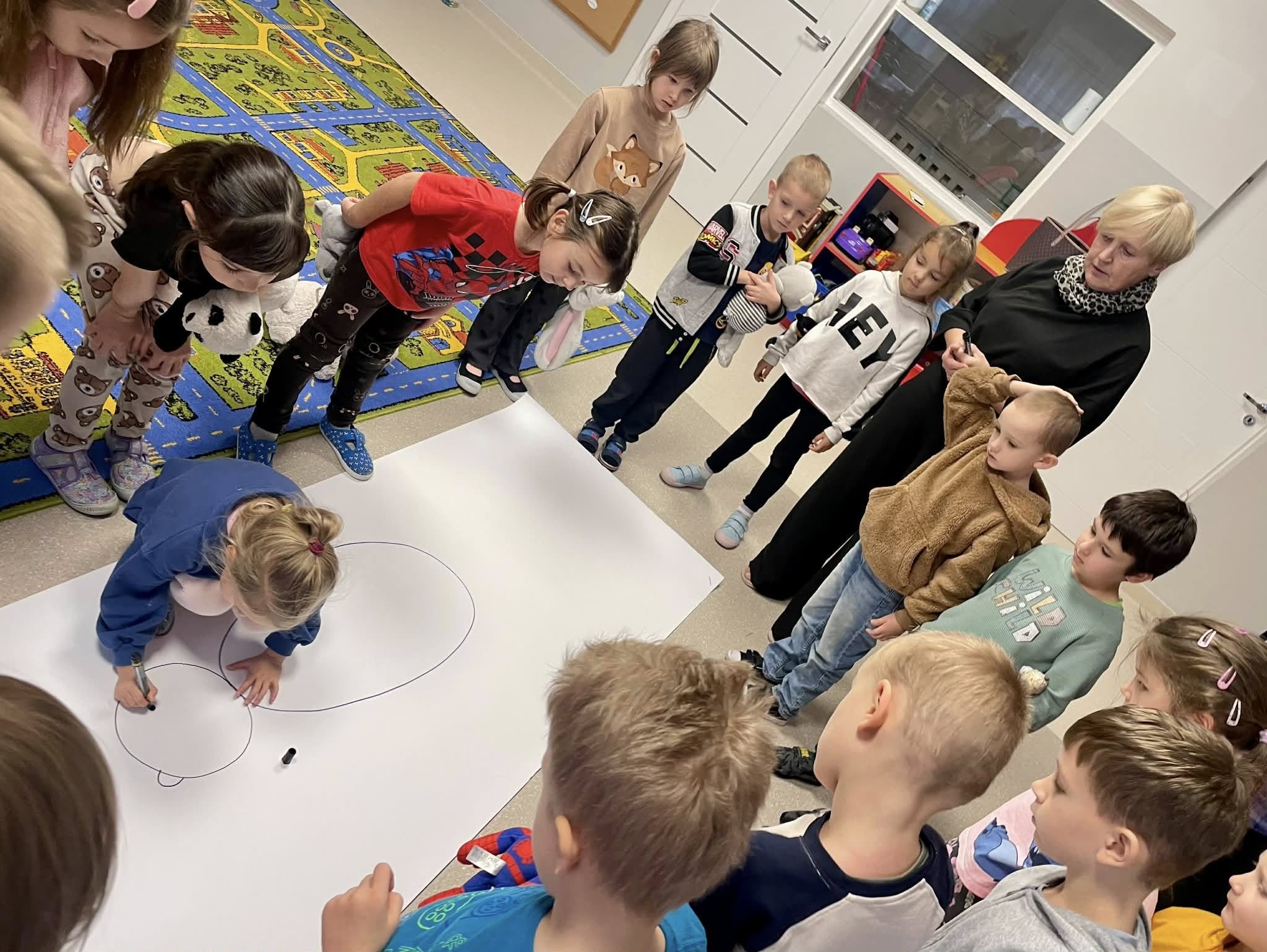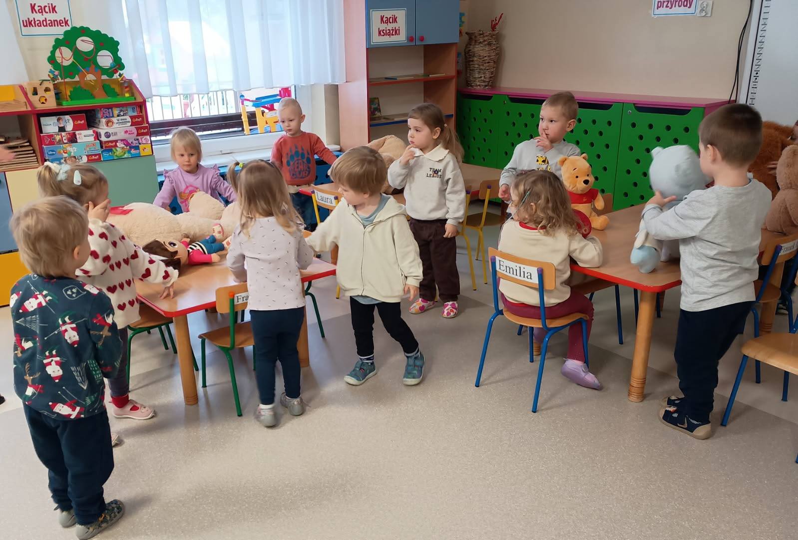 Światowy Dzień Pluszowego Misia to święto ustanowione w 2002 roku, w setną rocznicę powstania tej popularnej zabawki. W naszym przedszkolu obchodziliśmy je 25 i 26 listopada. Dzieci z grup Krasnale i Sówki odwiedziła pani Bożena z Miejskiej Biblioteki Publicznej w Mlądzu. Przedszkolaki wysłuchały historii o powstaniu misia-zabawki, wzięły udział w zabawach ruchowych i współpracując, ułożyły niedźwiadka z wyciętych elementów. Zwieńczeniem misiowych zajęć było wspólne, grupowe rysowanie misia na dużym arkuszu papieru. Dziękujemy Pani Bożenie za wspólne świętowanie