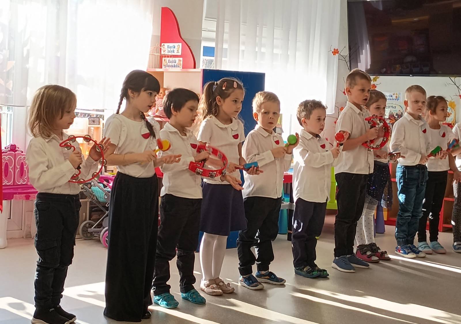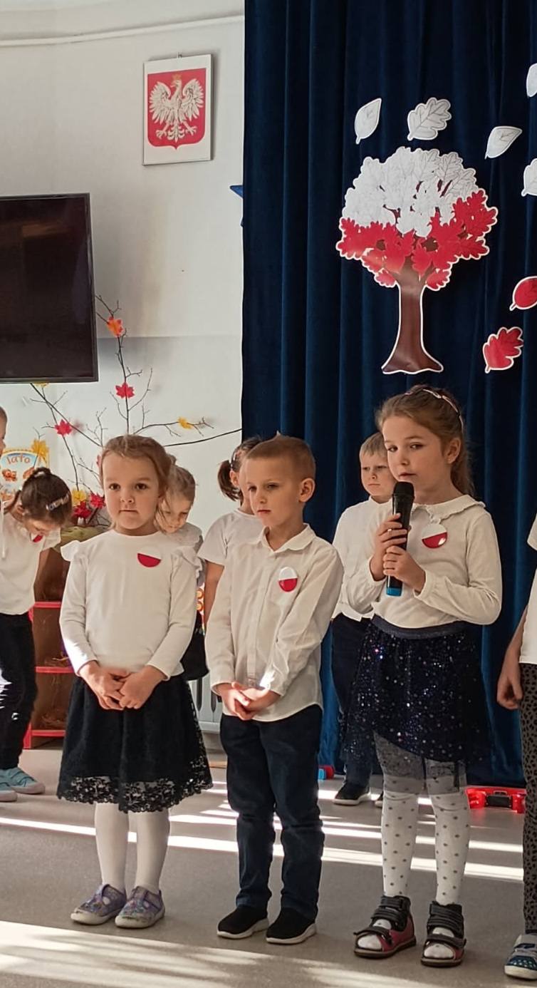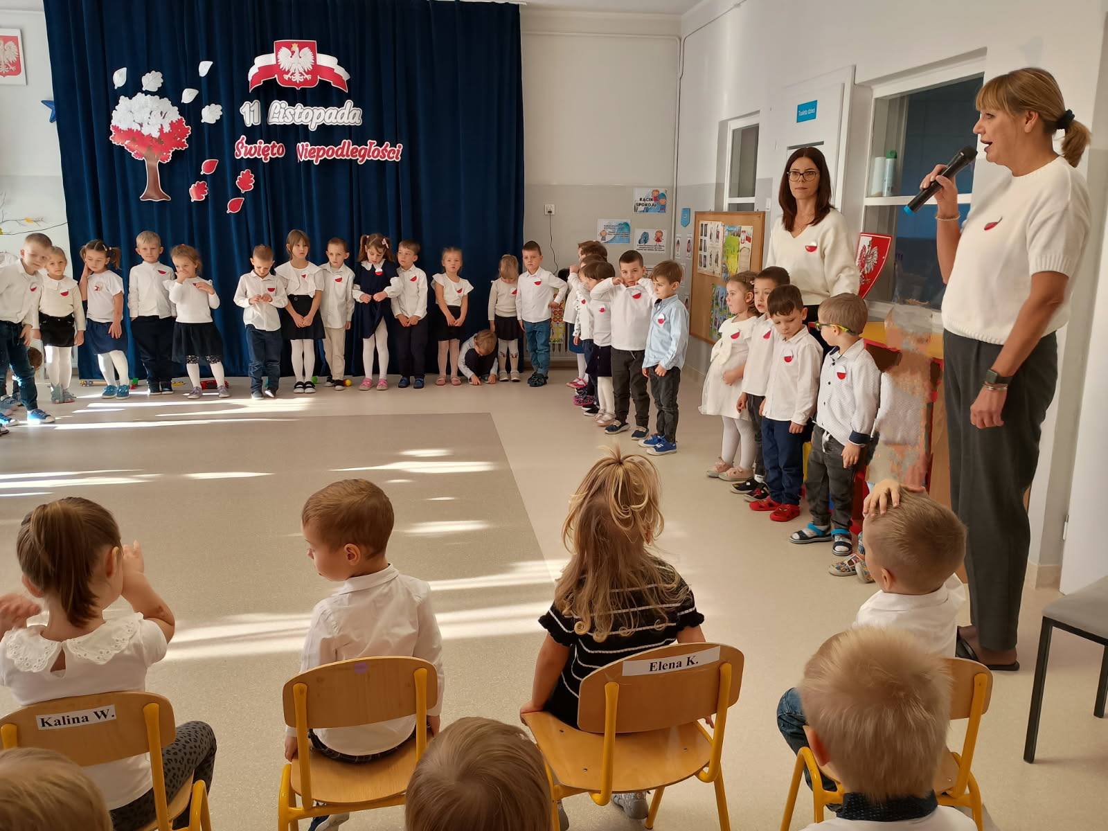 W dniu 7 listopada w przedszkolu odbyła się uroczysta akademia z okazji Narodowego Święta Niepodległości. Dzieci z grup Krasnale i Sówki zaprezentowały program artystyczny o tematyce patriotycznej. Następnie cała społeczność przedszkolna wspólnie odśpiewała hymn państwowy #SzkołaDoHymnu2025