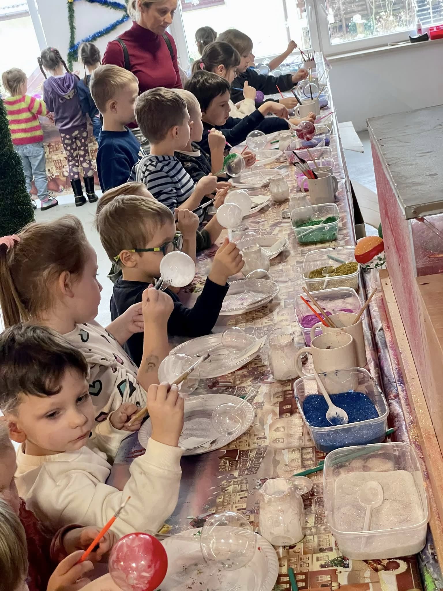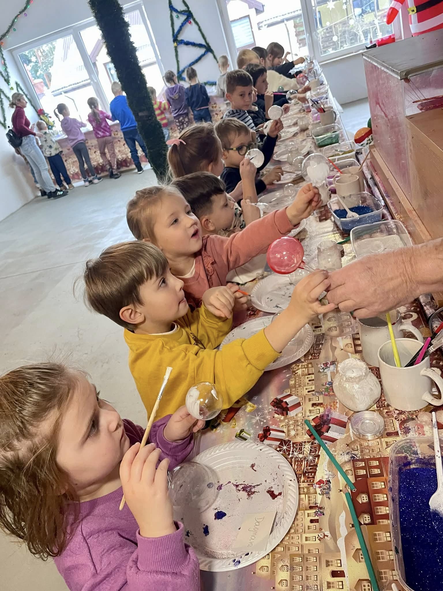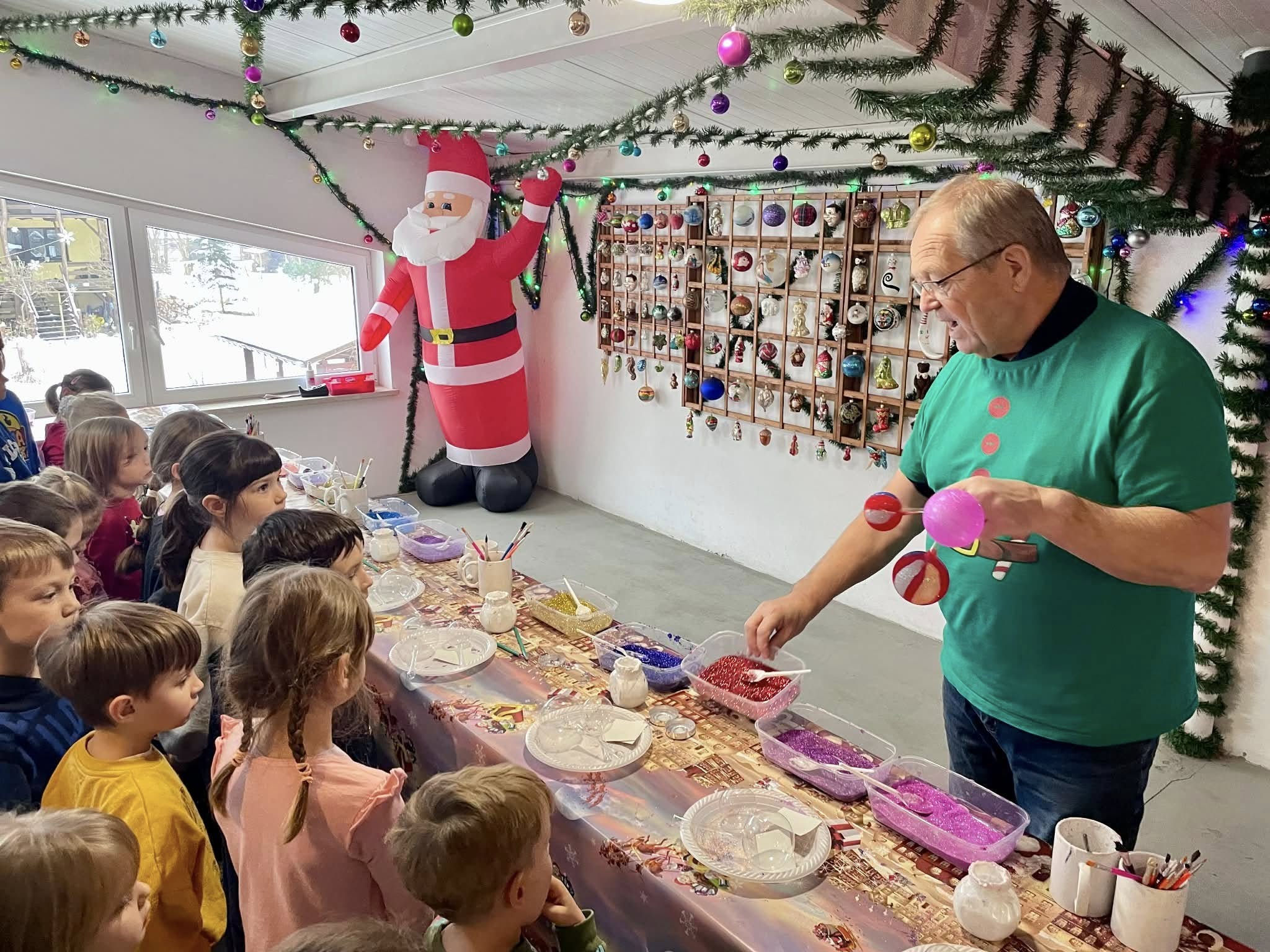 25 listopada dzieci z grup Krasnale i Sówki wybrały się do miejsca pełnego świątecznej magii-Bombkolandii w Głęboczycy. Przedszkolaki obserwowały pokaz tworzenia bombek. Dzieci miały możliwość zobaczyć jak z rozgrzanego szkła powstają ozdoby choinkowe. Następnie wzięły udział w warsztatach zdobienia bombek. Nie zabrakło rysowania listów do Świętego Mikołaja oraz niezwykłej atrakcji- korzystania z czarodziejskiego urządzenia do mielenia złych uczynków. Największą radość sprawiło dzieciom spotkanie z samym Świętym Mikołajem, który cierpliwie odpowiadał na pytania ciekawskich przedszkolaków.