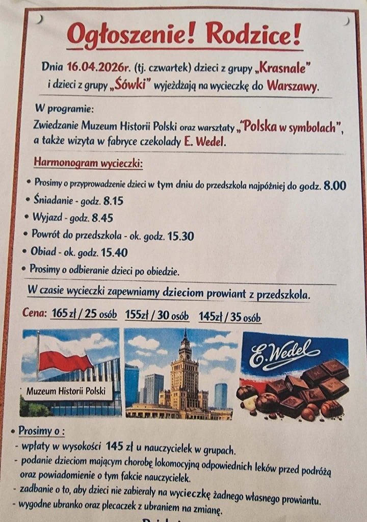 Harmonogram imprez i uroczystości przedszkolnych w roku szkolnym 2025/2026